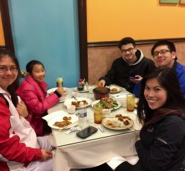 Kaila W. (University of Hawaii), Thea C. (Purdue University) and Michael W. (San Jose State University), Alvin L. (University of San Francisco, graduated) and Mikaela L. training at KMAC together and having a farewell dinner till next school break. Our best to you in your studies!