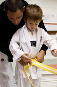 The Tiny Tigers program is an introductory taekwondo curriculum that emphasizes on the development of basic life and martial arts skills. These skills will help them become more confident and respectful. They will become better students at school, better listeners at home and be more ambitious towards future goals. The following are some of the skills your child will benefit from participating in the KMAC Tiny Tigers class:
